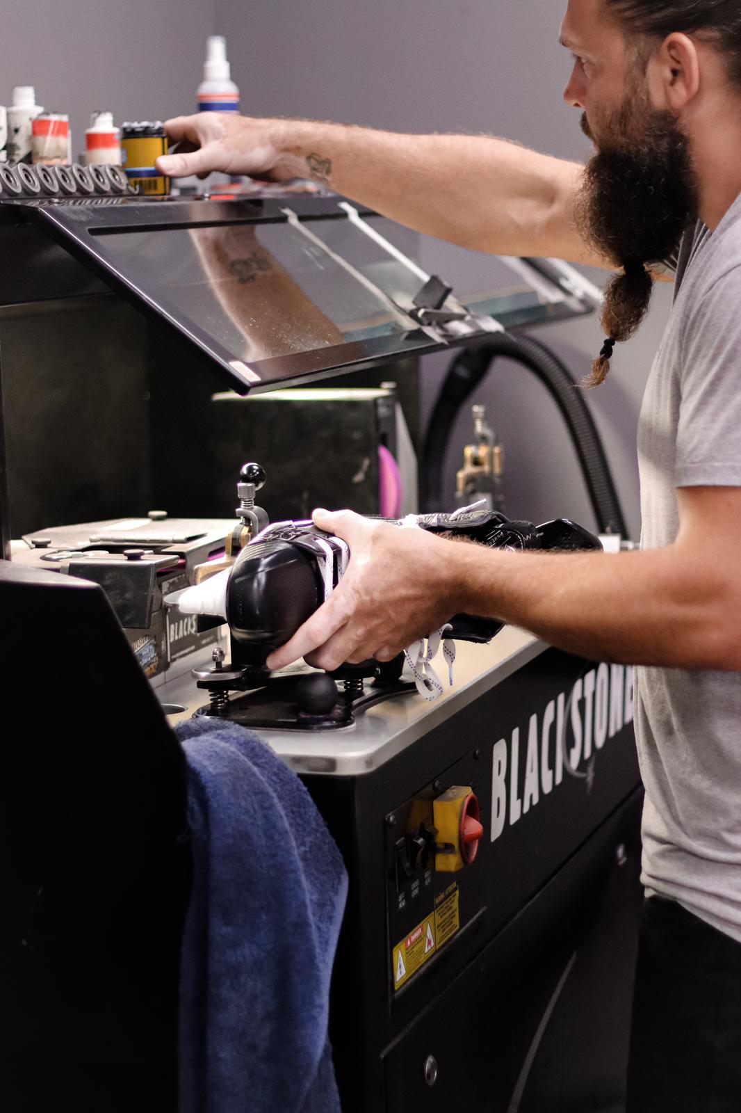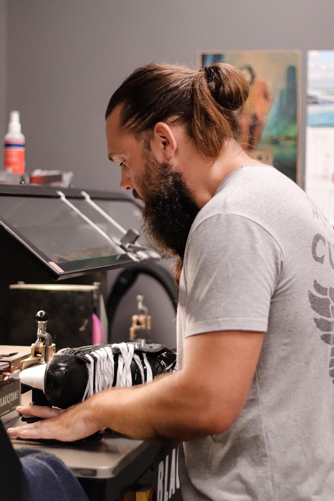 Slidu asināšana, slidzābaku formēšana, kniedēšana, asmeņu turētāju maiņa, asmeņu taisnošana, asmeņu profila izveide
